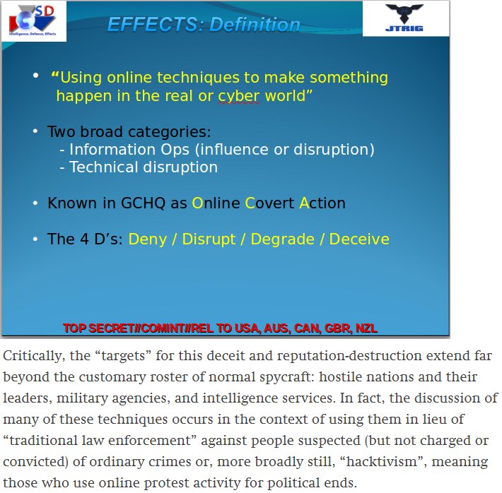 If you thought the smear/harassment campaigns targeting effective activists were 'just trolls'. Think again. https://theintercept.com/2014/02/24/jtrig-manipulation/ …