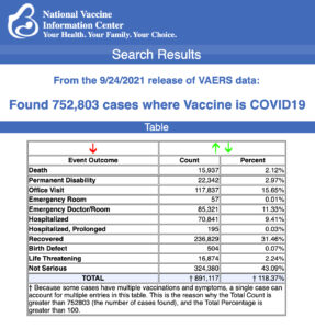 *Megan Redsham* - VAERS data released Friday by the CDC included a total of 752,803 reports of adverse events from all age groups following COVID vaccines, including 15,937 deaths and 105,758 serious injuries between Dec. 14, 2020 and Sept. 24, 2021. read more