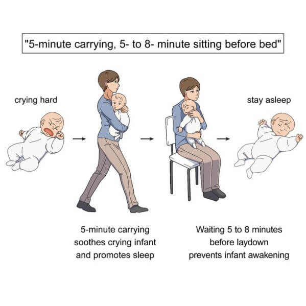 Researchers found a combination of walking, sitting, and holding babies for specific intervals of time